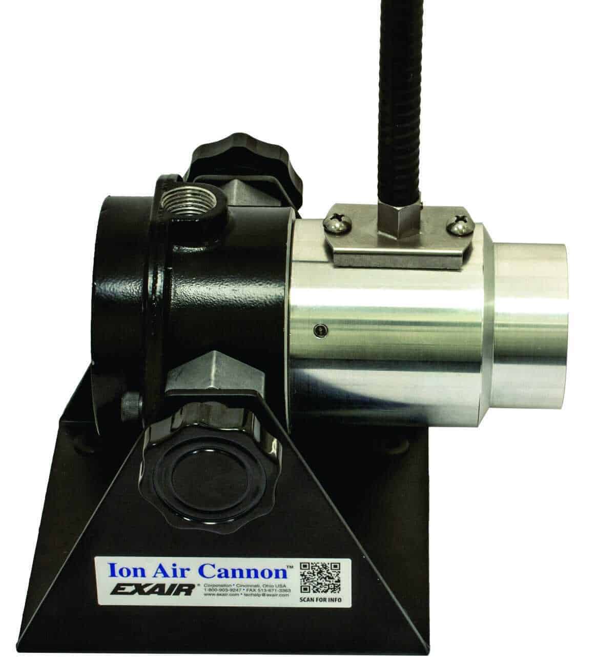 El Cañón de Aire Ionizado Gen4 de EXAIR neutraliza la electricidad estática y limpia a distancias de hasta 4,6 metros (15 pies) sin piezas móviles. Es ideal para aquellos espacios de difícil acceso o áreas confinadas que requieren un flujo concentrado de iones eliminadores de estática. Con un regulador de presión opcional, el volumen y la velocidad del aire son ajustables de forma continua en un amplio rango, para aplicaciones tanto ligeras como exigentes.