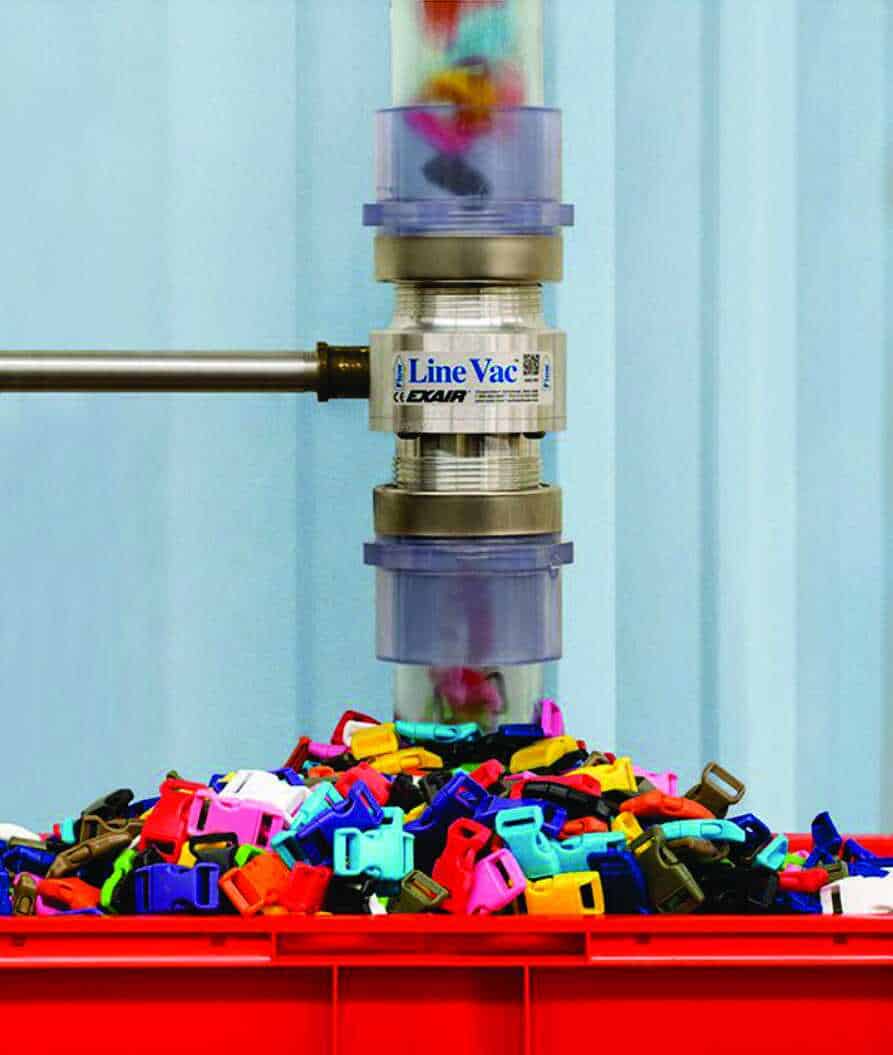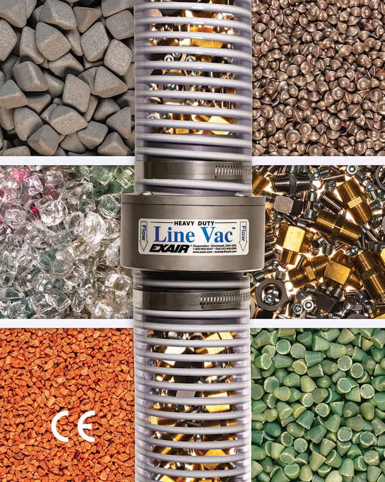 Los Line Vac o Transportadores por Vacío de EXAIR son componentes que, conectados a cualquier cañería, manguera o tubo estándar se transforman en poderosos Sistemas de transporte neumático. Su compacto diseño y su variedad de diámetros, permiten alcanzar elevados volúmenes de salida, permitiendo una capacidad de transporte muy elevada y a largas distancias. Asimismo, el volumen de material, puede ser fácilmente controlado por medio de un regulador de presión.